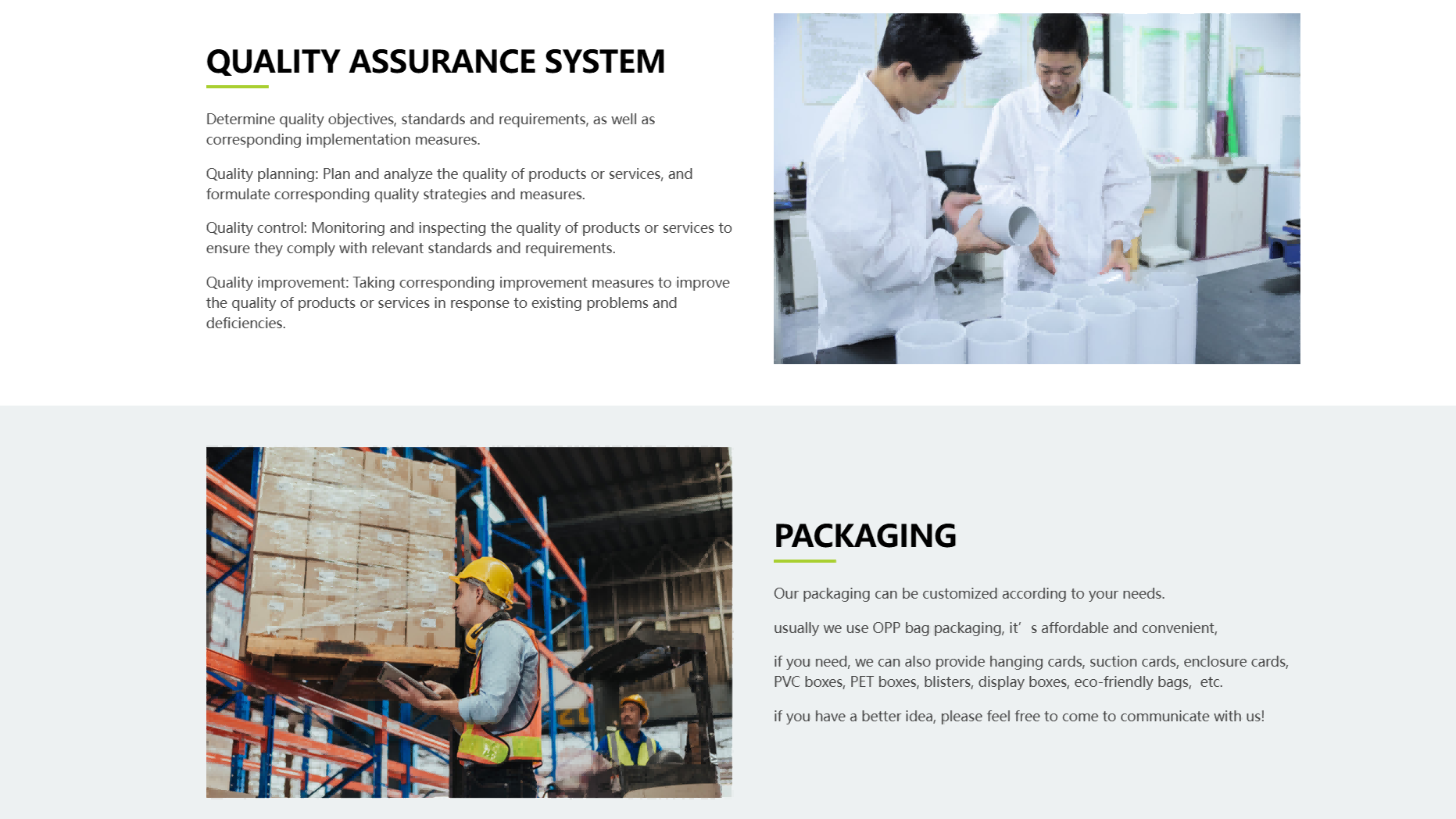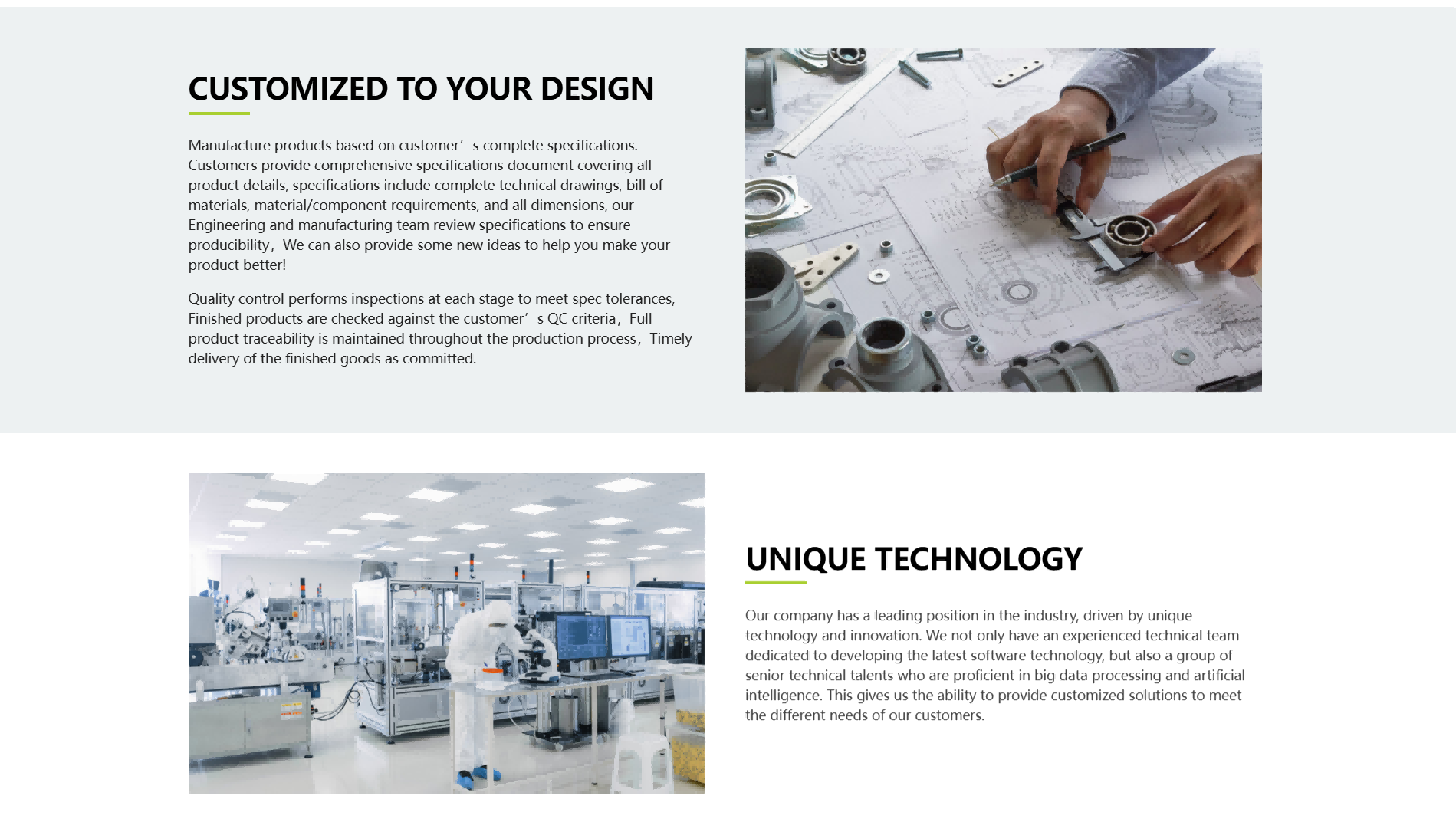 网站整体以白色为主色调,营造出专业、可靠的视觉氛围,符合工业制造企业的形象特点。绿色的按钮及部分重点文字,使页面层次分明,引导性强。产品图片色彩真实自然,与整体色彩搭配协调,有助于用户清晰地查看产品信息,让用户在浏览过程中感受到企业的严谨与专业。