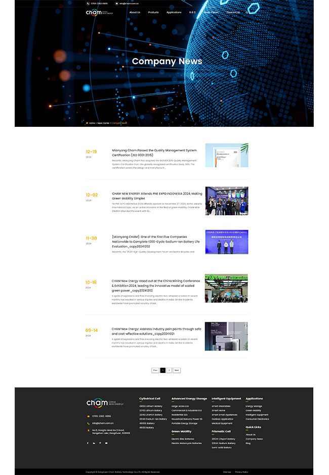 作为公司对外展示的平台,介绍其作为中国领先的锂电池制造商和供应商的专业实力。网站详细展示了公司的核心产品、技术创新和行业应用,突显其在新能源解决方案领域的领先地位。通过提供产品信息、技术突破和成功案例,网站旨在吸引潜在客户、建立行业影响力,并促进与合作伙伴的沟通与合作。