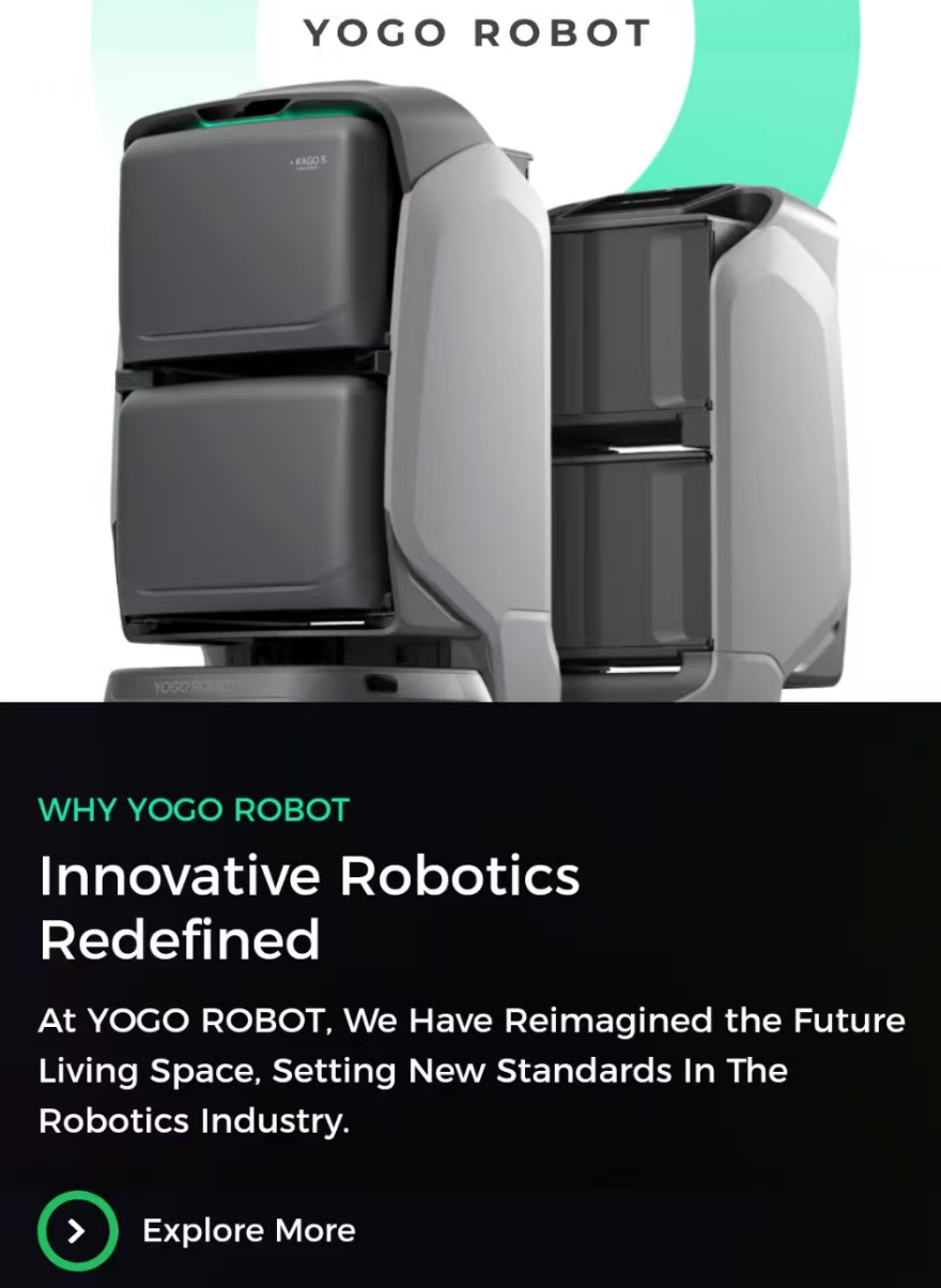 YOGO机器人官网以白色为主色调,象征着企业的创新活力与开拓精神,传递出品牌对智能机器人领域的热情与探索精神。辅以柔和的黑色,增添了亲和力与科技人文融合的氛围,体现出企业对用户体验的重视和对未来智能化生活的美好愿景。