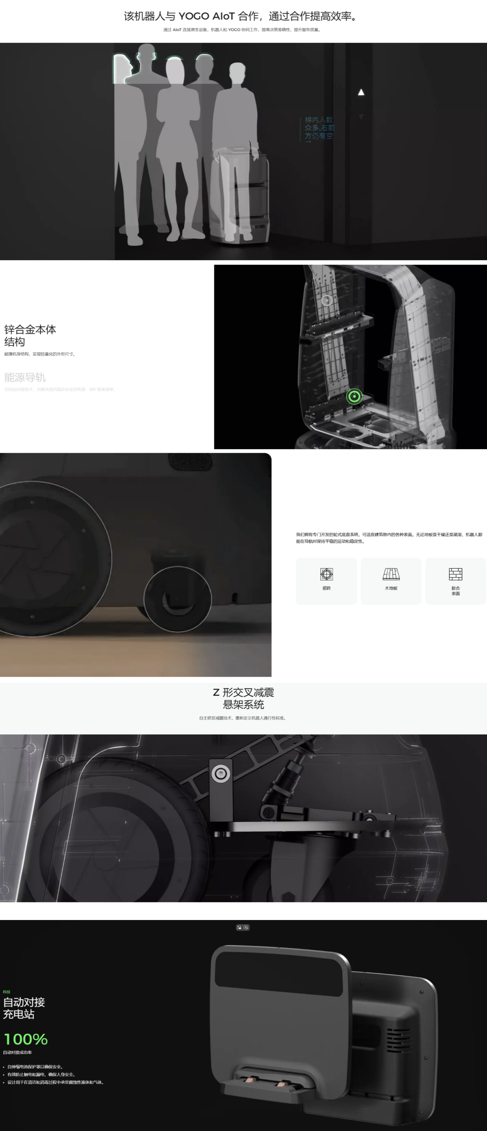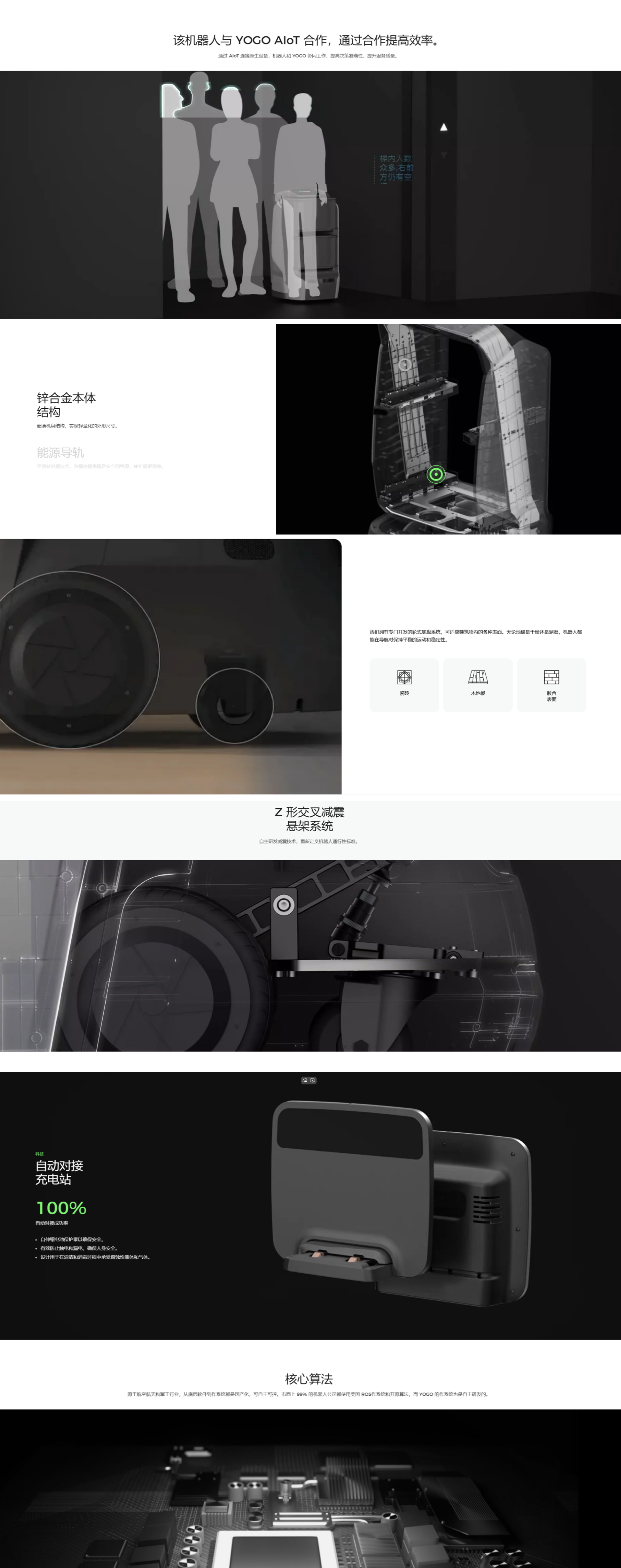 YOGO机器人官网以用户舒适性为核心,采用别与黑色的经典色调搭配,营造出温馨且富有科技感的视觉氛围。网站整体设计简洁直观,内容分类清晰,用户可以轻松找到产品介绍、应用场景、技术优势等详细信息。导航设计直观便捷,菜单结构合理,确保用户快速定位目标页面。